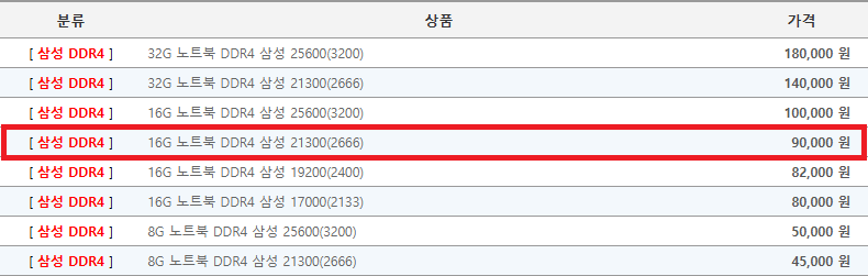 | 상품명 | 삼성전자 노트북용 DDR4-2666 16GB 램 1개 |